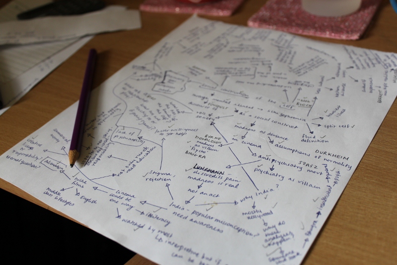 In fact, another person’s mind map might not help you much. I once had a professor who drew one on a whiteboard, with lots of ideas that we were throwing up for discussion, and lots of arrows. She seemed delighted by the productive class we’d had, but the rest of us had no idea what had just happened or how to turn it into notes! (Well, perhaps that was the lesson. She was a wonderfully unconventional teacher.)