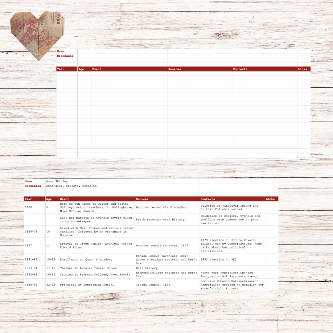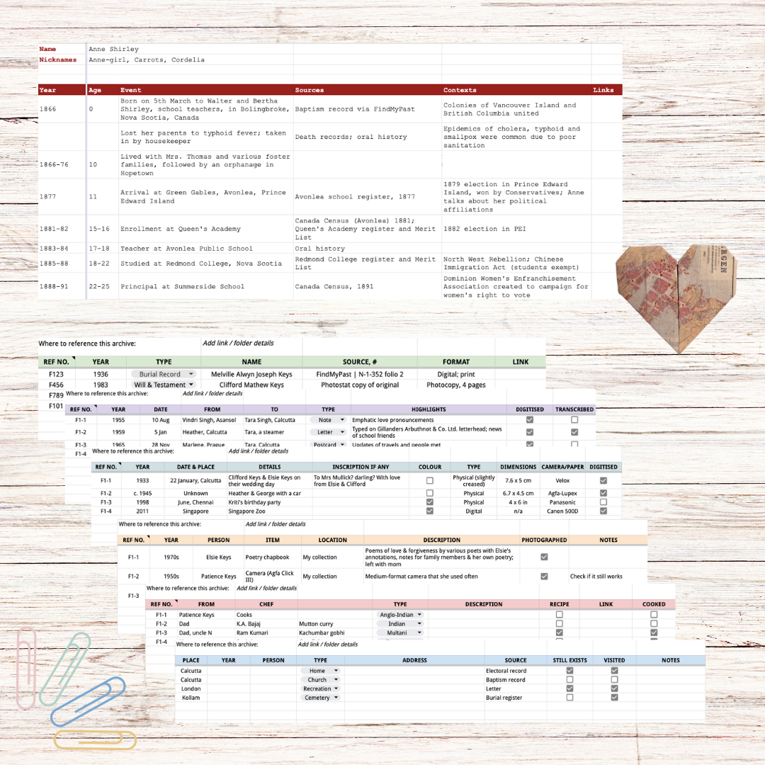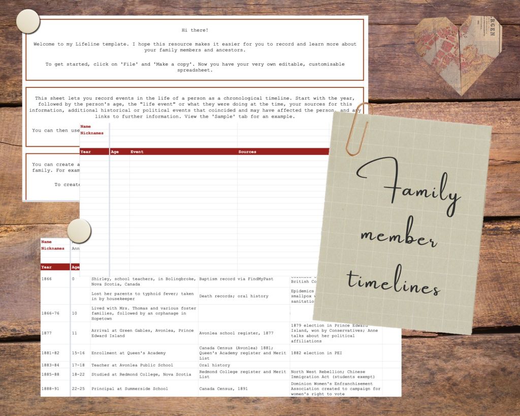 A collection of two useful digital resources if you’re delving deeper into family history. Create life timelines to reference during storytelling and research, and a filing system to keep track of everything in your archive. This bundle includes (click to expand each item for more information):