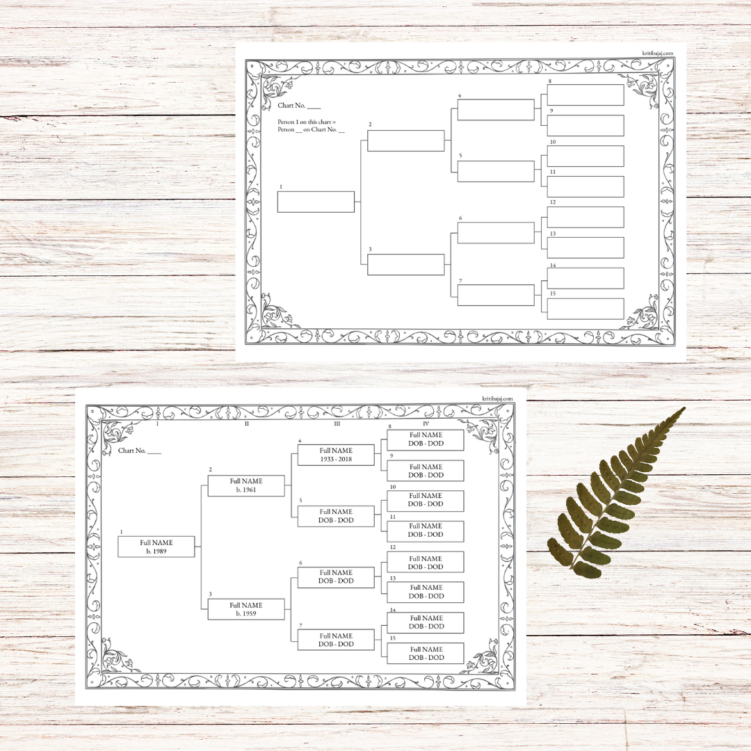 Elegant editable and printable 4-generation pedigree chart templates to help you view your ancestry at a glance. Replicate or print as many as needed. Click to expand the features below for more information.