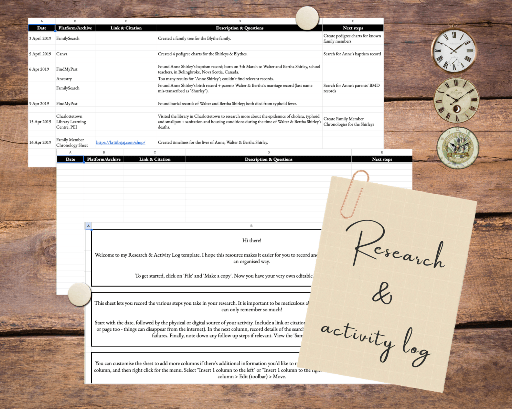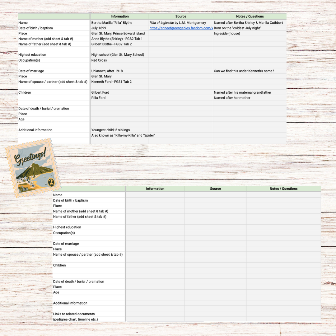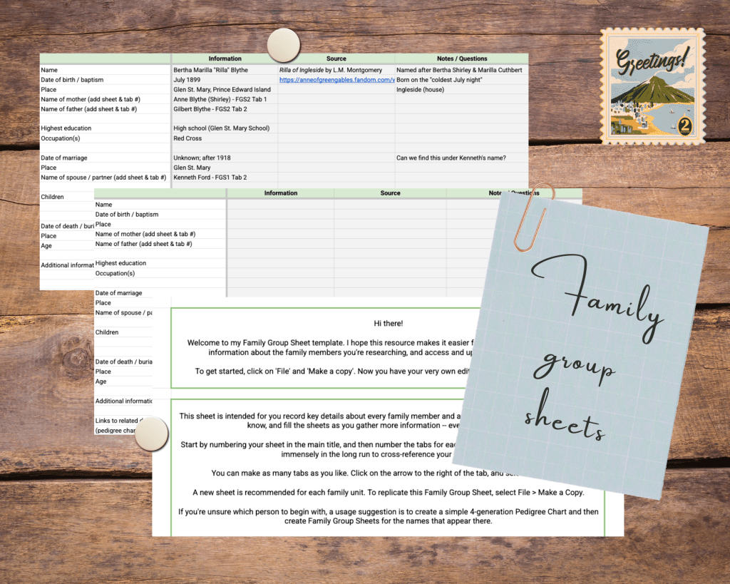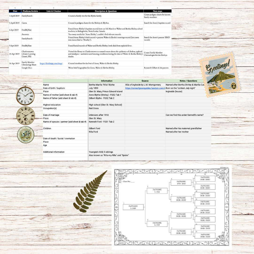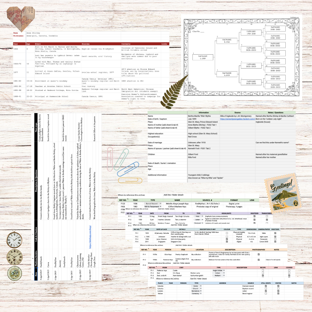 Customisable digital templates to organise your genealogical research.